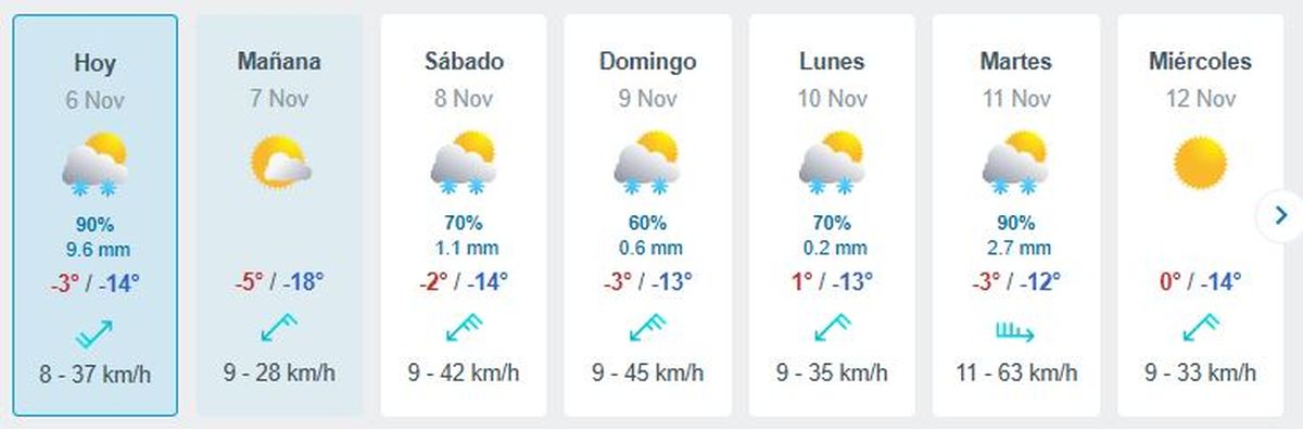 Lo que pudo saberse a través del pronóstico extendido del portal climático Meteored, es que desde el sábado 8 hasta el martes 11 de noviembre habrá nevadas en la localidad de Las Cuevas, pero no está definido si se podrá cruzar igualmente la cordillera.