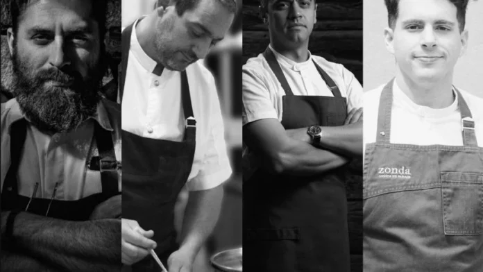 Sebastián Weigandt (Azafrán); Mariano Gallego (Brindillas); Iván Azar (Casa Vigil) y Augusto García (Zonda, Cocina de Paisaje) comandan los restaurantes que fueron reconocidos en noviembre con una Estrella por la prestigiosa Guía Michelín. Ahora, cocinarán juntos como parte del ciclo Experiencia de Chef, que viene realizando Mendocina Cocina, el espacio gastronómico itinerante que Bodega Lagarde tiene en el mercado y paseo de compras de Godoy Cruz.